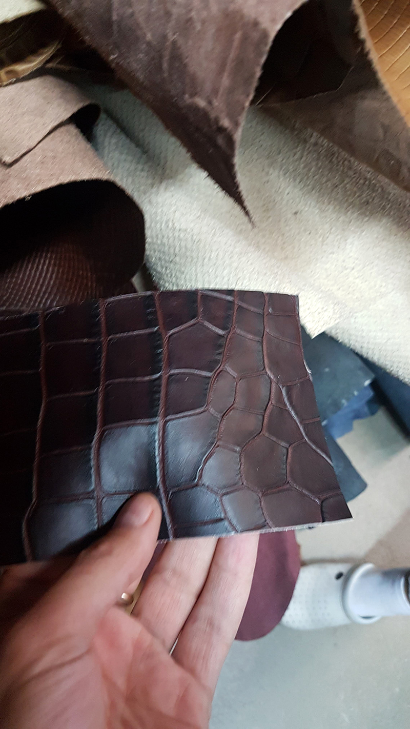 Ieri, la cererea unei cliente, am fotografiat in depozitul de piele cateva nuante de piele pentru o poseta de toamna Sasha, pe coniac. Am cautat o combinatie frumoasa si…am gasit. Clienta a ales din multitudinea de culori de mai jos o combinatie intre doua nuante care se potriveau, am adaugat accesorii aurii si…am dat in lucru poseta. Probabil maine va fi gata si vom reveni cu fotografii. Pana una alta, va prezentam mai jos pielea croco pe care o puteti admira zilele acestea in atelier.