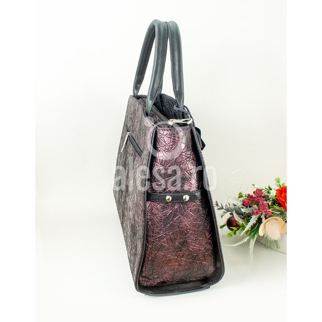 Si tot pe piele sidefata, de data asta grena spre lila, geanta Hera