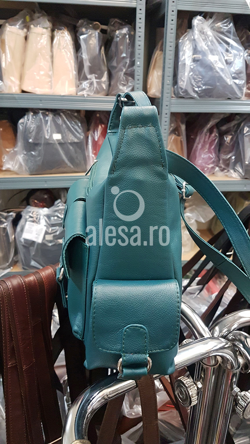 Geanta de umar cu buzunare exterioare Siri, pe alb si turquoise