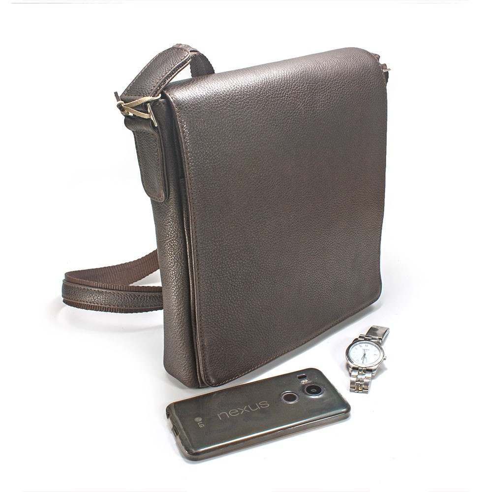 Palma este o geanta barbateasca maro din piele naturala, o geanta tip borseta de umar, deosebit de practica si eficienta. Geanta are un aspect elegant si in acelasi timp echilibrat, sobru. Geanta se poarta pe umar, are o curea de umar ajustabila, rezistenta, dublata cu material textil.