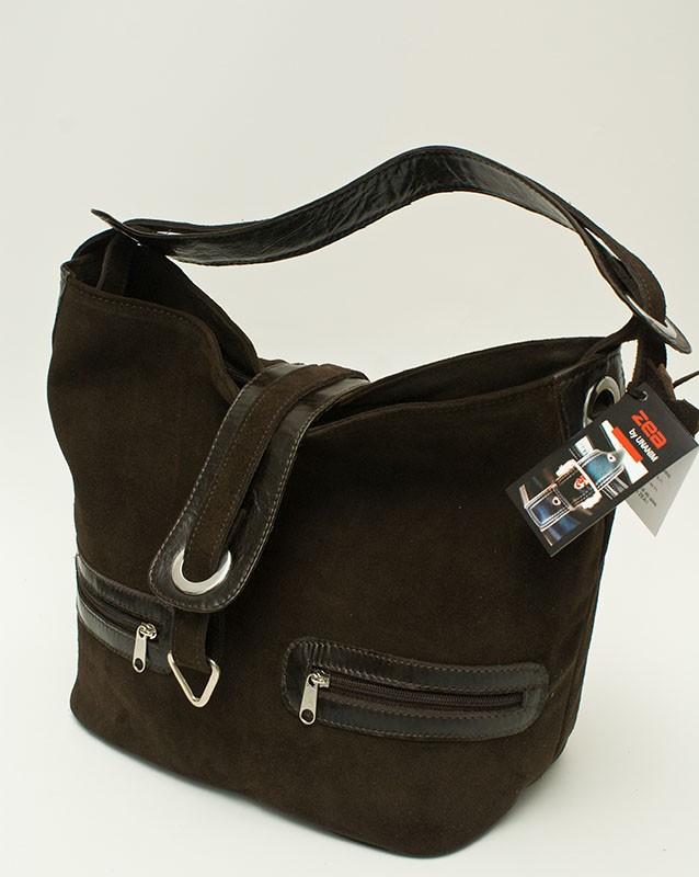 Geanta de umar din piele naturala, eleganta si incapatoare. Interesanta cureaua din partea de sus, dar si cele doua fermoare ornamentale din partea din fata. In magazin exista si o alta versiune a acestei genti la care fermoarele au fost inlocuite cu mici cureluse cu rol ornamental.