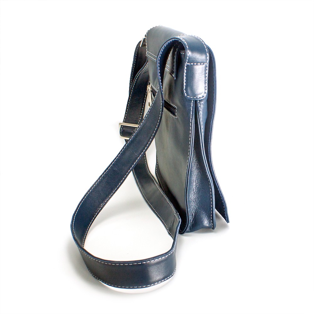 Geanta de piele unisex, cu un aspect deosebit. In interior are doua compartimente separate, are un buzunar interior prevazut cu fermoar si un buzunar pentru telefonul mobil, cu fermoar. Geanta se inchide cu fermoar. In partea din spate are un alt buzunar cu fermoar. Clapeta nu are inchidere, este libera, ceea ce ajuta la deschiderea mai usoara si accesibila a gentii.