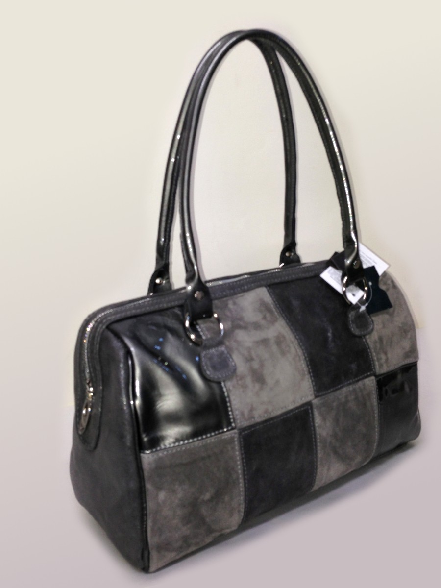Poseta de piele eleganta, practica, frumoasa, Angela cu model petice este o alegere excelenta pentru orice doamna sau domnisoara care doreste sa asorteze o poseta eleganta la un costum office. Poseta are doua manere prinse cu accesorii metalice in lateral, fermoar lung ce permite deschiderea posetei dintr-o parte intr-alta, iar combinatiile de culori permit o varietate foarte mare, incat practic fiecare poseta poate fi unica.