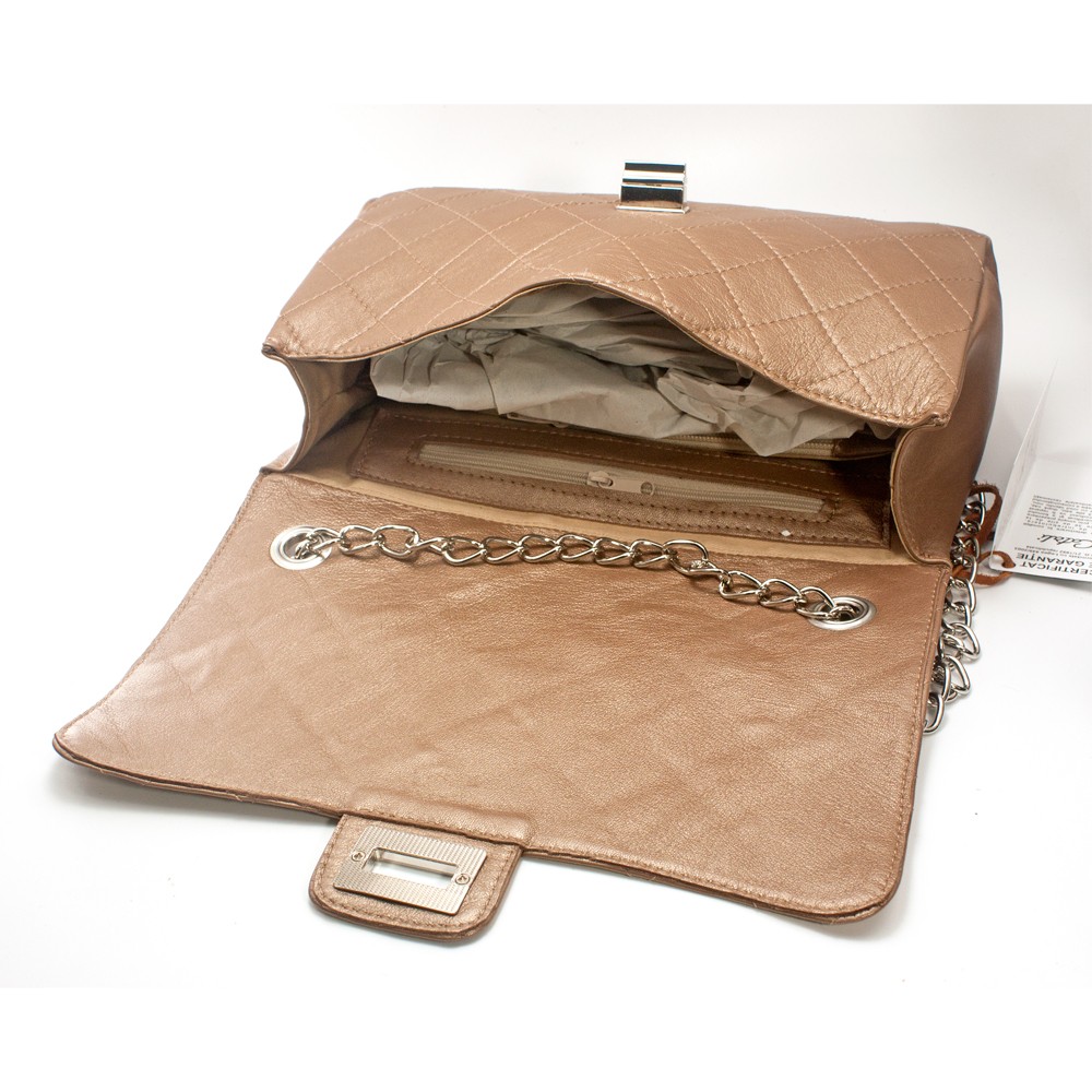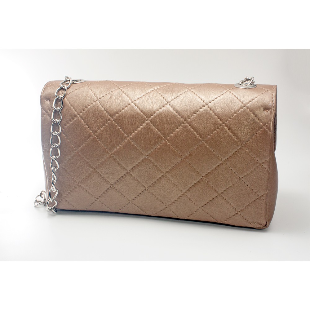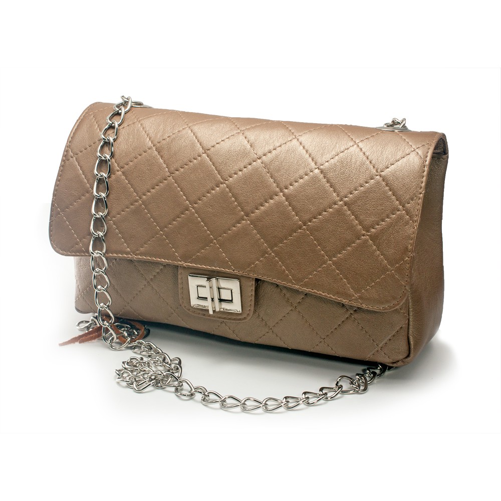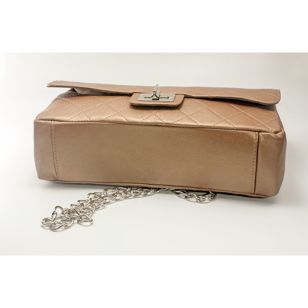 Poseta are doua compartimente delimitate de un separator cu buzunar, iar la interior are un buzunar cu fermoar dispus pe peretele din spate si un suport pentru telefonul mobil pe peretele din fata. Are baza dreapta pentru o buna stabilitate, se inchide cu clapeta cu ajutorul unei capse prin rasucire. Este prevazuta cu un lant elegant de umar cu o lungime de 115 cm